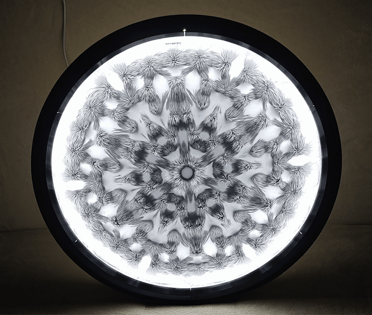 So I made magnetic field mandala bigger and after a while, I had the idea to use the light to highlight the effect.